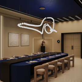 LED luster visoke elegancije i izuzetne svetlosne moći, boje hroma, snaga 417W, toplo bela boja svetla.