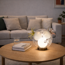 Stona lampa umetničkog dizajna, izrađena od stakla nepravilnog oblika. Dolazi u kompletu sa G4 sijalicom.