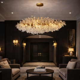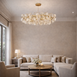 LED luster visoke elegancije i izuzetne svetlosne moći, boje hroma, snaga 417W, toplo bela boja svetla.