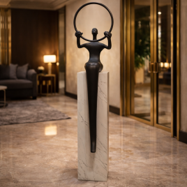 Statua koja se ističe apstraktnim dizajnom, jedinstvenim oblikom i elegancijom.