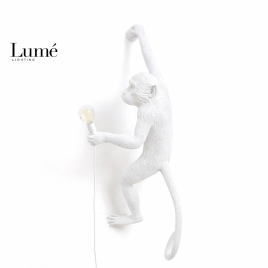 Regina 20 visilica u beloj boji je dekorativno viseće osvetljenje sa upečatljivim dizajnom u obliku majmuna koji drži sijalicu i visi na kanapu.