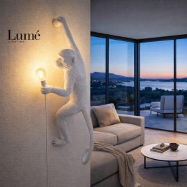 Zidna lampa za unutrašnju rasvetu REGINA 16 u beloj boji sa jednim E27 grlom donosi unikatan dizajn – figura majmuna koji drži sijalicu na kanapu. Ova dekorativna rasveta savršena je za one koji žele upečatljiv i kreativan detalj u svom prostoru.