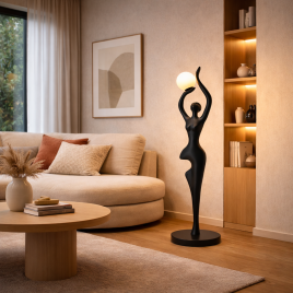 Podna lampa stilskog dizajna, visina 140 cm, crna boja, jedno sijalično mesto.