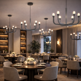Ekskluzivna visilica snage 80W i temperaturom svetla 3000K, deo Lumé kolekcije, pruža snažnu i efektivnu rasvetu. Idealna za velike prostore poput salona, galerija, restorana i prostranih dnevnih soba.