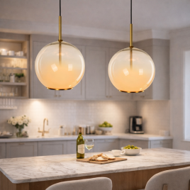 Elegantna visilica sa staklenim abažurom, boje mesinga, snaga 6W, toplo bela boja svetla.