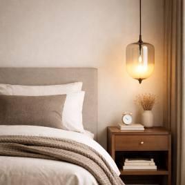 Visilica elegantnog i svedenog dizajna, sa zatamnjenim staklenim abažurom, snaga 5W, toplo bela boja svetla.