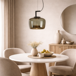 Visilica elegantnog i svedenog dizajna, sa zatamnjenim staklenim abažurom, snaga 5W, toplo bela boja svetla.