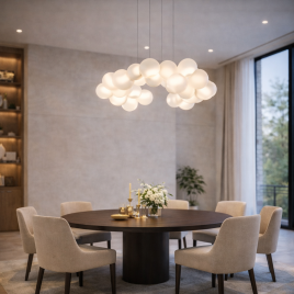 Luster iz Lumé kolekcije sa 45W snage i 3000K svetlom pruža intenzivno osvetljenje za prostrane dnevne sobe, trpezarije i prostorije za prijem gostiju.