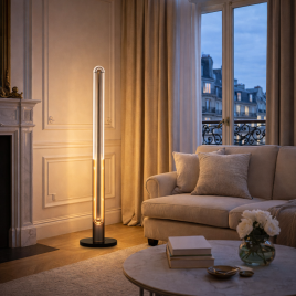 Podna lampa iz ekskluzvine Lumé kolekcije sa 12W snage i 3000K svetlom savršen je izbor za dnevne sobe, prostorije za čitanje i kutke za opuštanje. Sa modernim dizajnom, ova lampa pruža funkcionalno i estetski prijatno osvetljenje.
